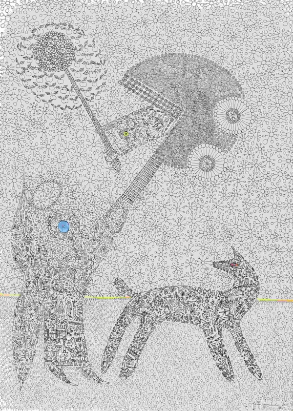 Az már a legelső perctől kezdve világos volt, hogy Herencsár András rajzait a biztonságos múzeumi távolságból is lehet nézni, csak éppen minek. Még talán az sem elég, ha igen igen közel megyünk a rajzokhoz…. Nem, egy átlag András-rajzhoz tulajdonképpen kevés két szem és egy agy, minimum tanulságos tehát többen nekilátni a rajzok nézegetésének. Hiszen centiméterenként botlunk bele új sztoriba, újabb meghalás vagy születés változatba, összekapaszkodva szaladó tulipánfejű lényekbe, trapézon feljebb lendülőkbe, vonatra várakozókba, sárkánygépekbe, halakba, embert sütögető ördögökbe, trombitaszájú menetelőkbe, csillagfejű kutyákba, és így tovább. Találunk itt mindent, ami szem-szájnak ingere. A rajzok egyfelől az asszociációk egymást inspiráló köreiből születnek, ám a gyakran minta-szerűen ismételt alakokból, motívumokból is egyértelmű, hogy létrehozásukhoz meditatív állapot kellett, illetve, hogy éppen ilyet teremtettek a művek alkotójuknak létrejövésük során. Az alakok, tárgyak nemcsak megszámlálhatatlanok, hanem forrásaik, értelmezési lehetőségeik is éppen ennyien vannak: ismert eszközeink, szimbólumaink elevenednek meg, s rajzolódnak át egy sosem volt, szürreális, szabad világba. Többször támadt az az érzésem, hogy ha leesne egy kép, s eltörne az üveg, a pici alakok, pici gépeikkel, dolgaikkal boldogan sikítozva rohangálnának szerteszét...de aztán tudom, hogy újra megkeresnék egymást, hiszen egymásból származnak, egymást ölték meg és szülték a papíron. Herencsár András Születetett: 1956. március 24., Budapest Iskolák: 1970-74 Móricz Zsigmond Gimnázium 1974-76 Nyomdaipari Szakiskola Szakmai tapasztalat: 1979- 1980 Magyar Nemzeti Galéria, grafikai raktáros 1980- 1982 Népszínház Csoportosszereplő 1982- 1993 Pannónia Filmstúdió, tagos kamerás 1993- 2000 Lapterjesztő vállalat, lapkihordó 2000- 2008 Dorottya Galéria, raktáros, teremőr, pénztáros, szervező 2009. Tabán mozi (büfés) 2013-2014 Magyar Nemzeti Galéria, archiváló